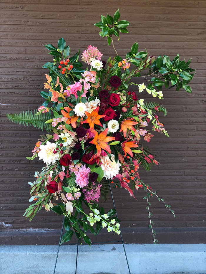 Our Designers will create a unique tribute piece with our most beautiful and fresh seasonal ingredients. You are welcome to request your preferences for color and floral varieties but the ultimate flower choices will be selected by us, based on seasonal availability and quality of blooms.