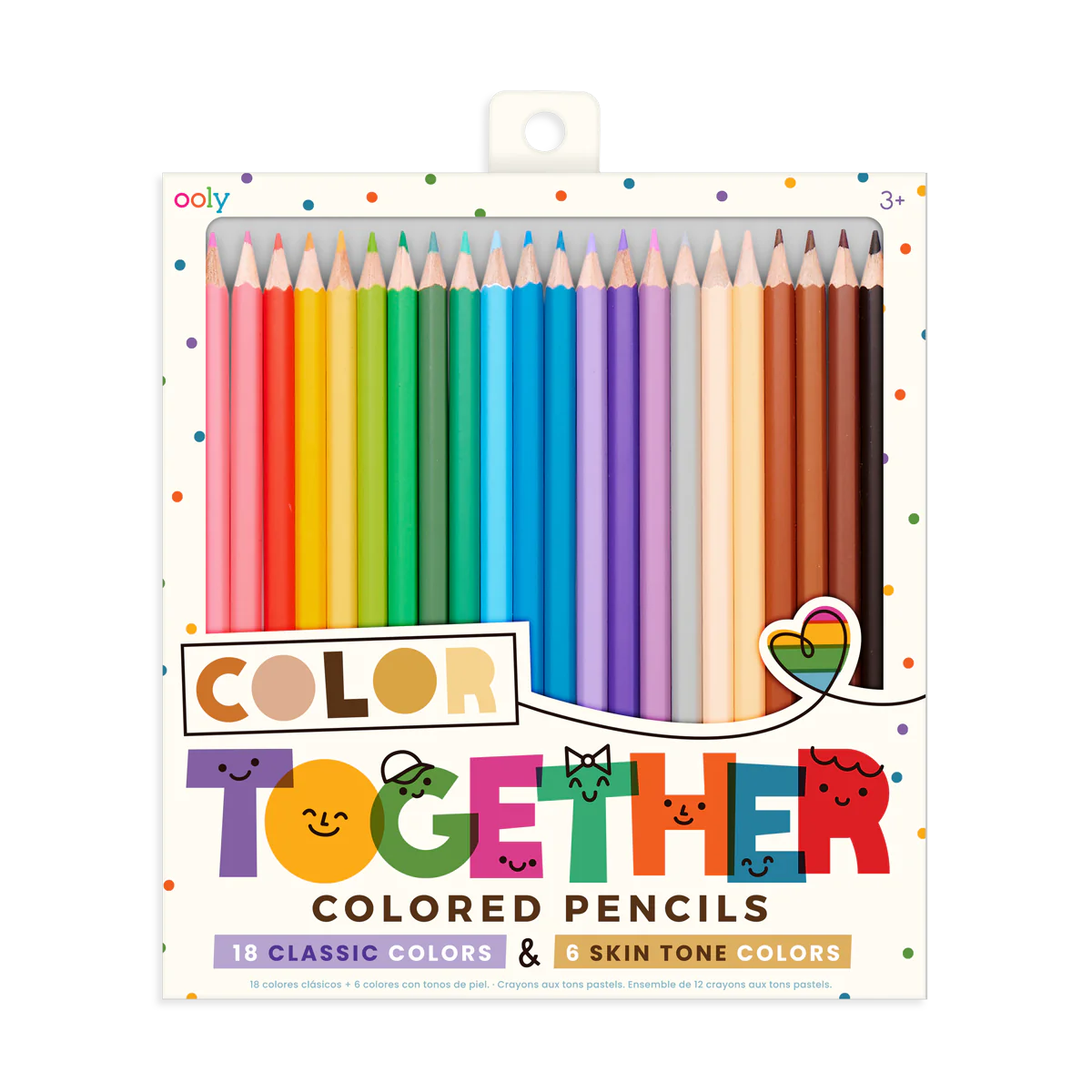 Grab your friends, your family, your teachers, or your neighbors and get ready to color together. This 24 pack of colored pencils features 18 classic shades, plus 6 skin tone colored pencils so you’ll have plenty of color for everyone! With the Color Together Colored Pencils you can create more detailed and realistic art. The 18 classic shades allow you to color anything you can dream up, while the 6 skin tone shades allow you to draw yourself and anyone else in a way that best represents them. The 24 pack of colored pencils is perfect for all art projects large and small, so grab a friend and any of the OOLY sketchbooks, and get ready to color together! Suitable for ages 3 and up.