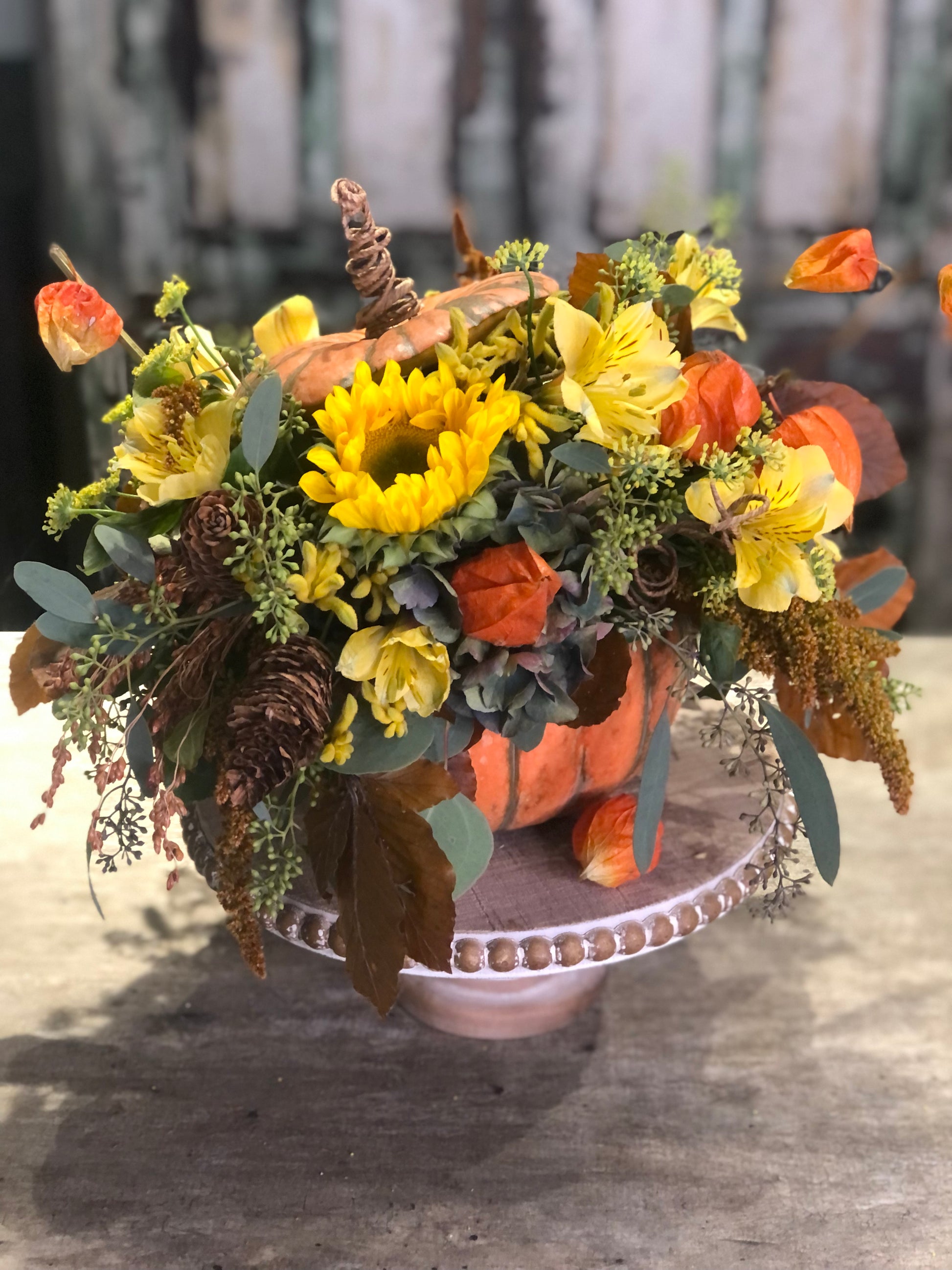 Classic garden style designed in a pumpkin to compliment your Thanksgiving festivities. Makes for a great focal piece for any gathering!